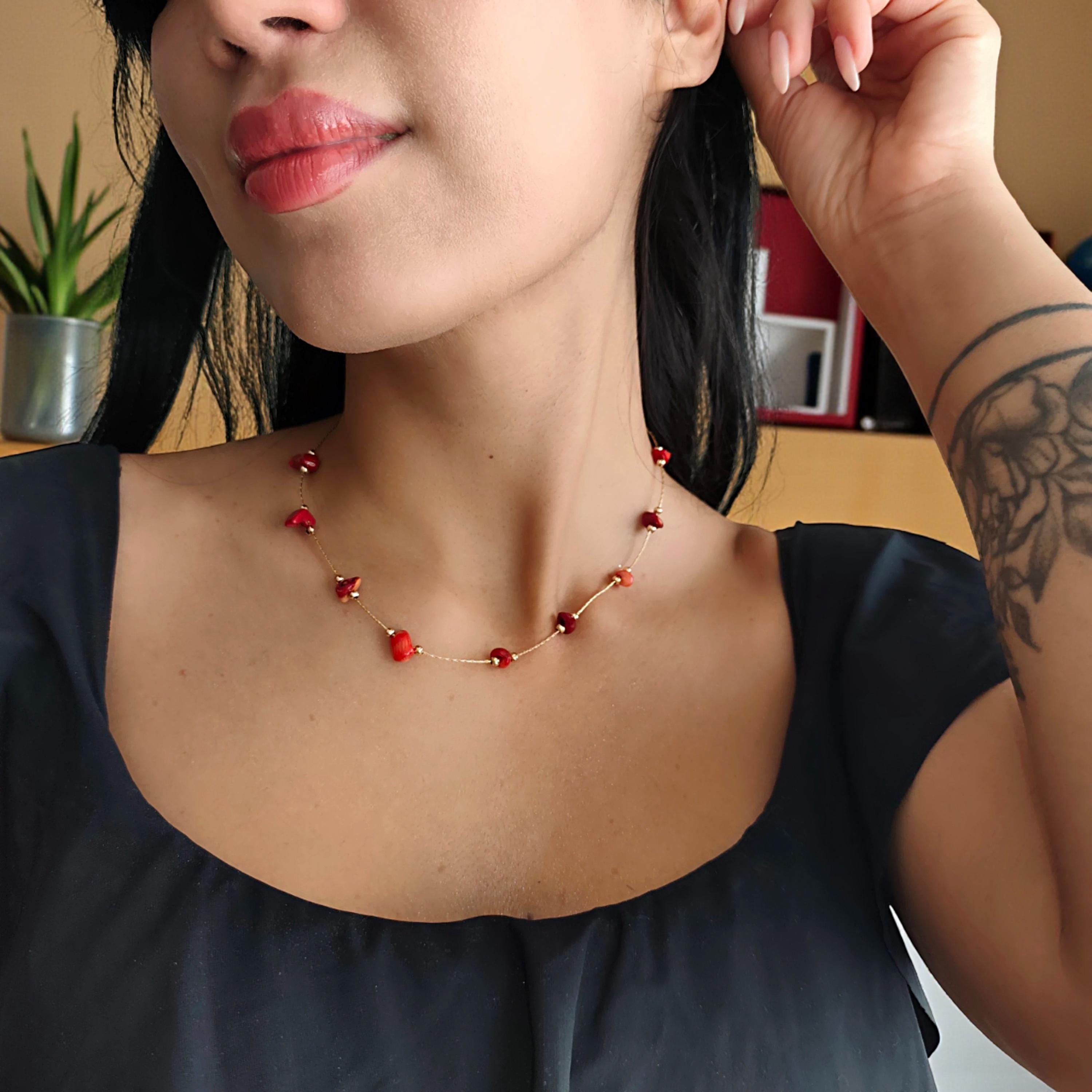 Coral Necklace — Gold Filled March Birthstone Jewelry - Best Friend Gift for Her