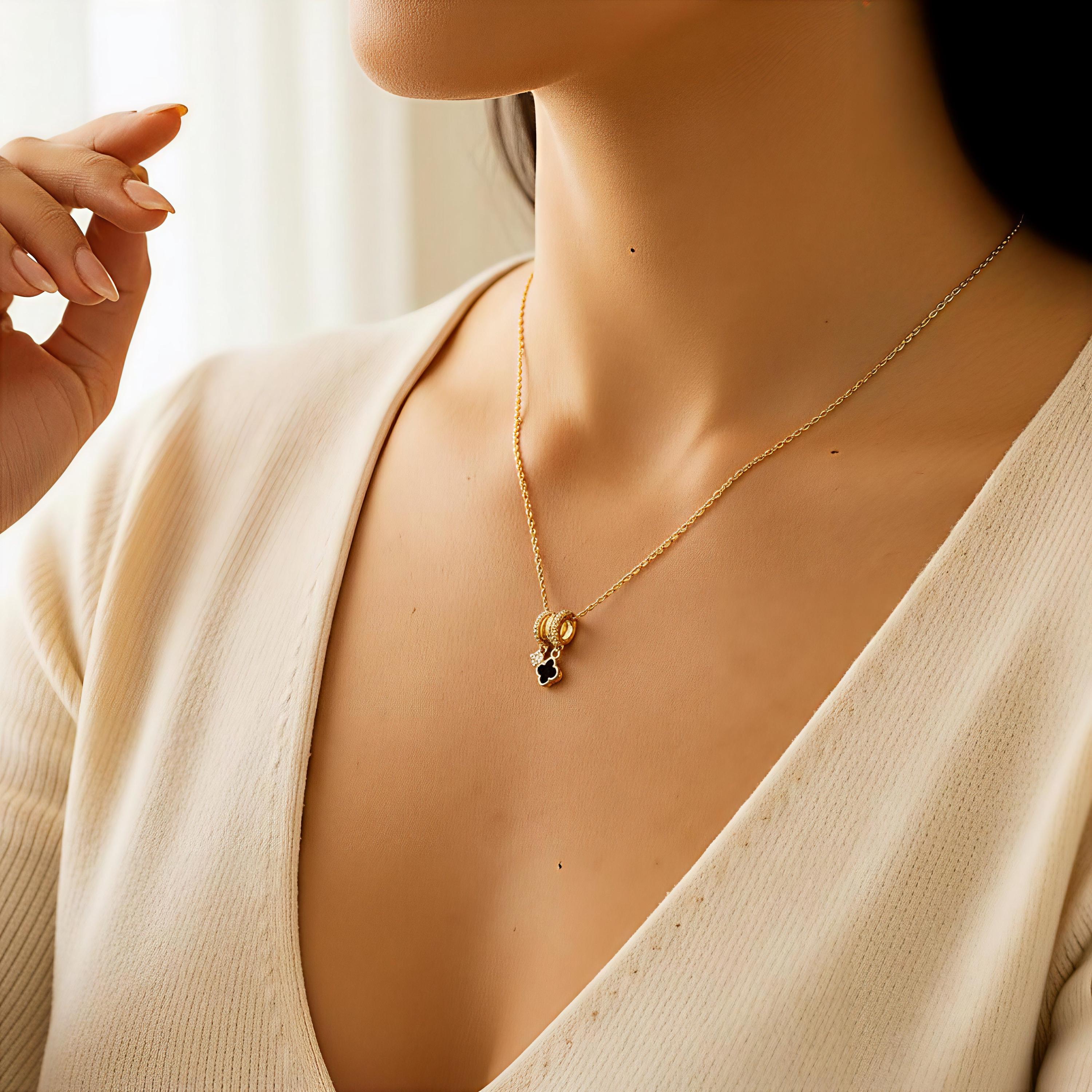 This elegant clover necklace features a radiant four leaf clover gold charm, symbolizing luck, love, and positivity. Designed as a delicate, dainty necklace and a chic minimalist necklace, it layers beautifully or shines on its own.