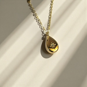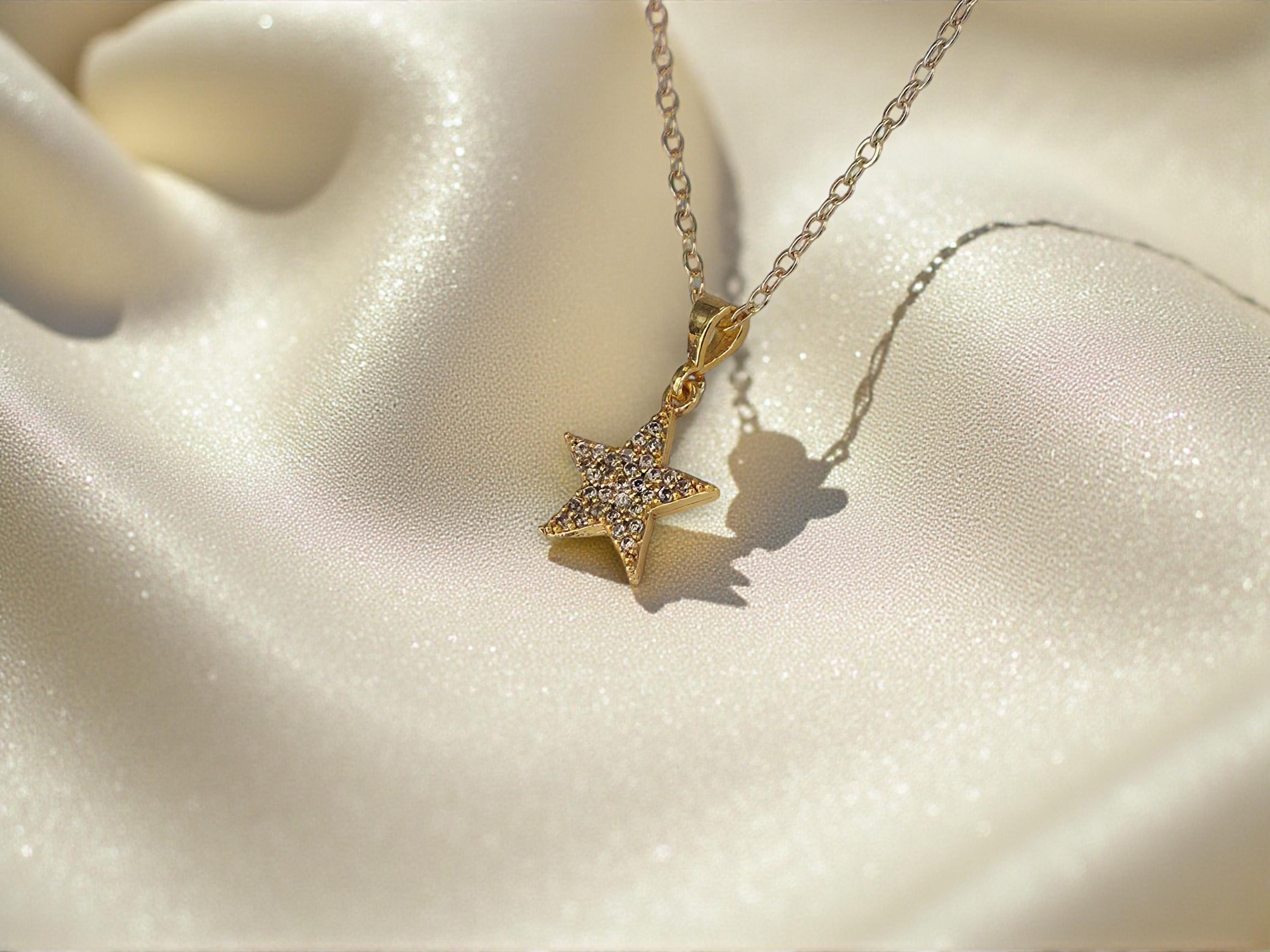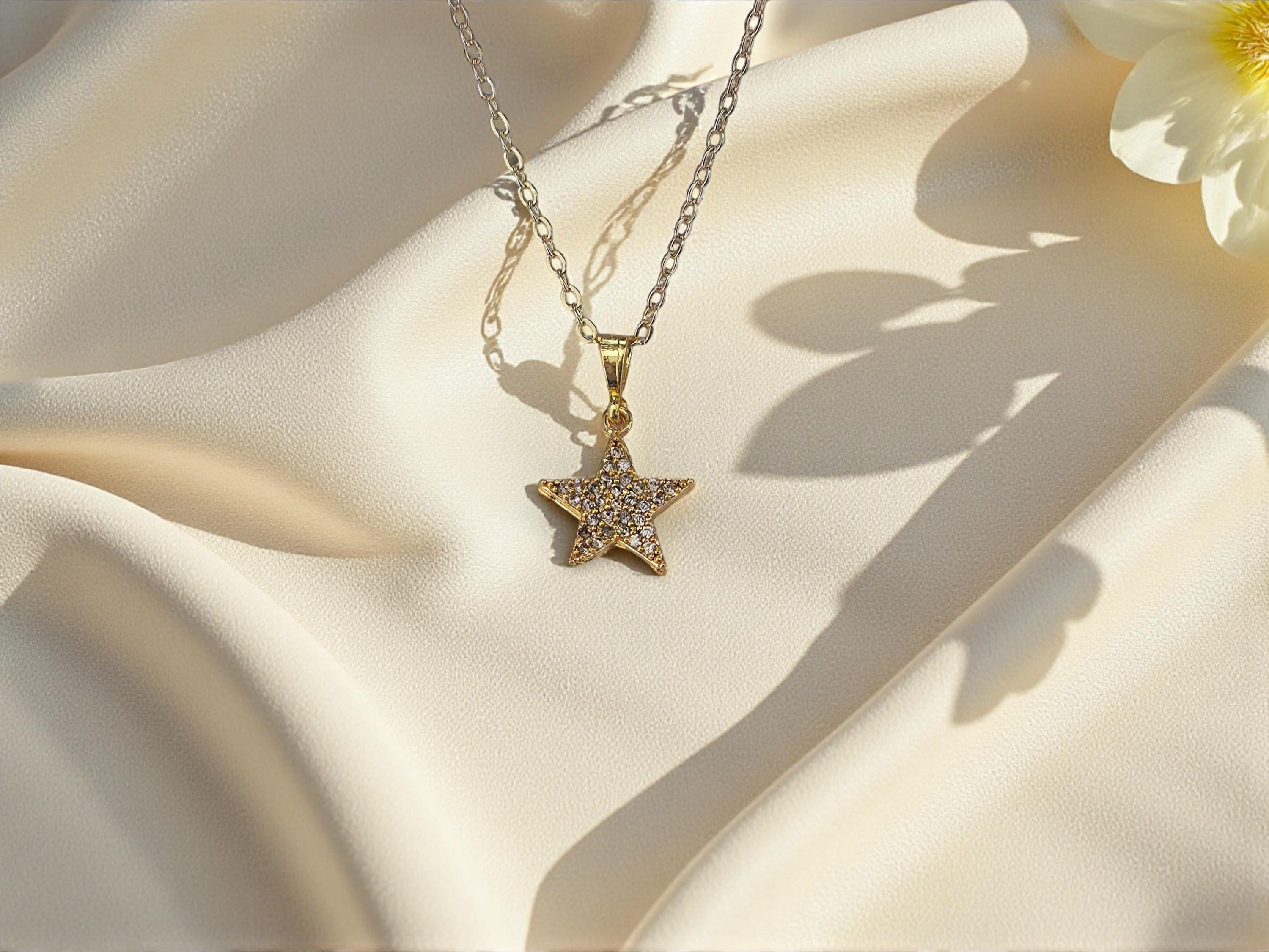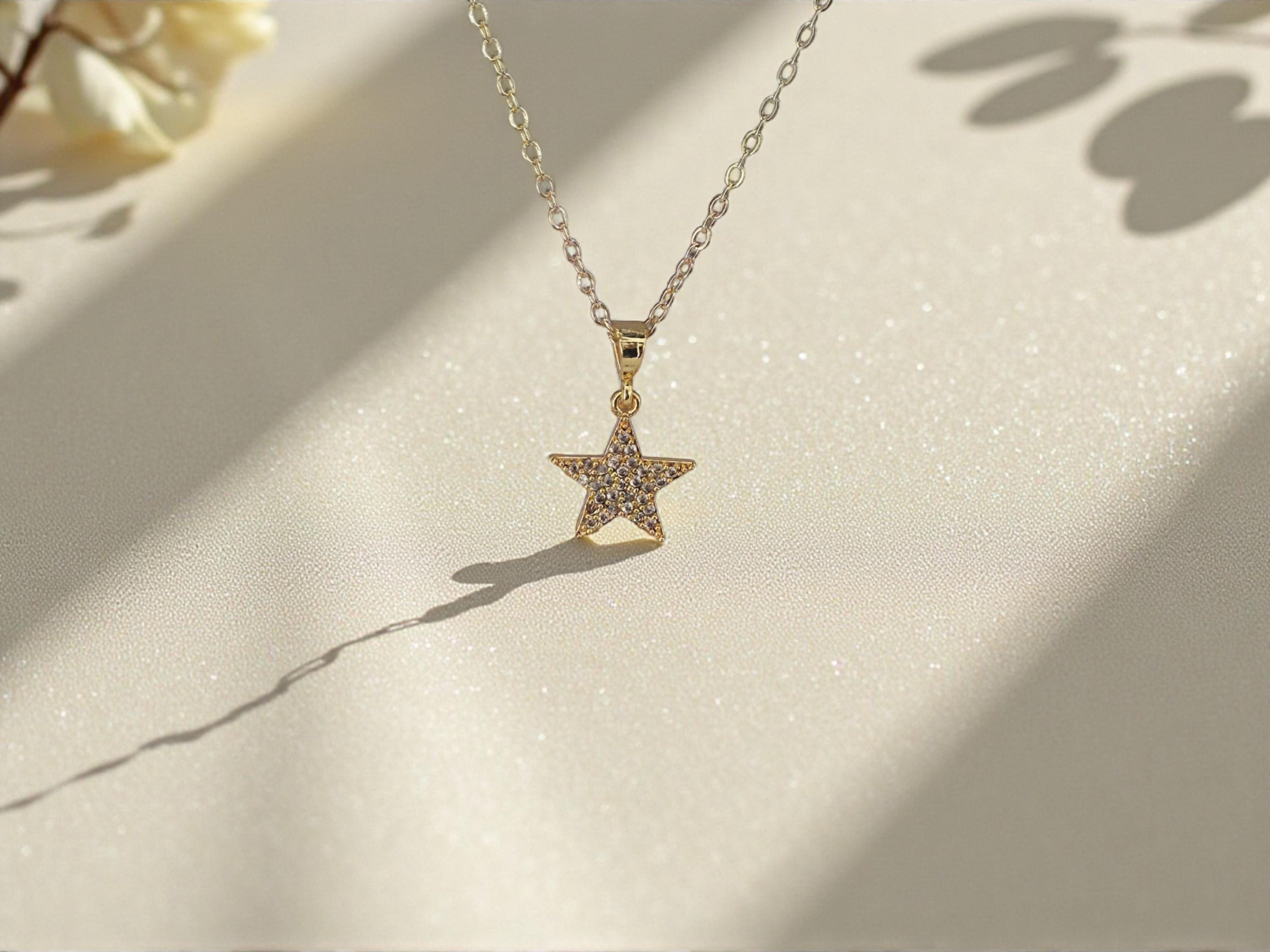 This radiant gold star necklace features a delicate star pendant, designed as timeless celestial jewelry. Its lightweight style makes it a versatile dainty necklace and chic minimalist necklace that layers beautifully or shines on its own.