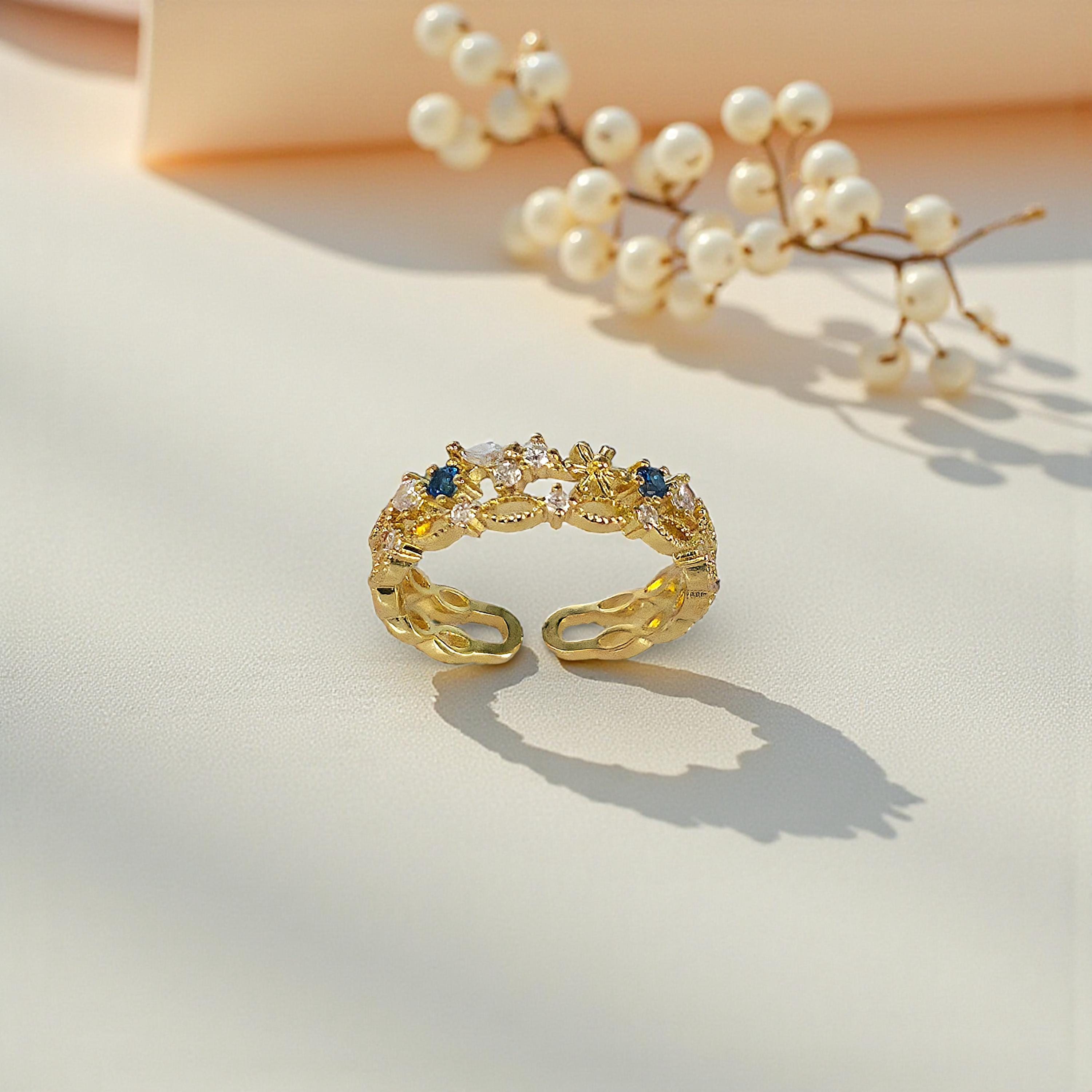 It can be styled as stackable rings, worn alone as a statement ring, or gifted as a promise ring, anniversary gift, galentine gift, or bridesmaid gift. Inspired by crown ring and tiara ring motifs, this dainty gold ring combines minimalist jewelry appeal with timeless vintage ring influences.
